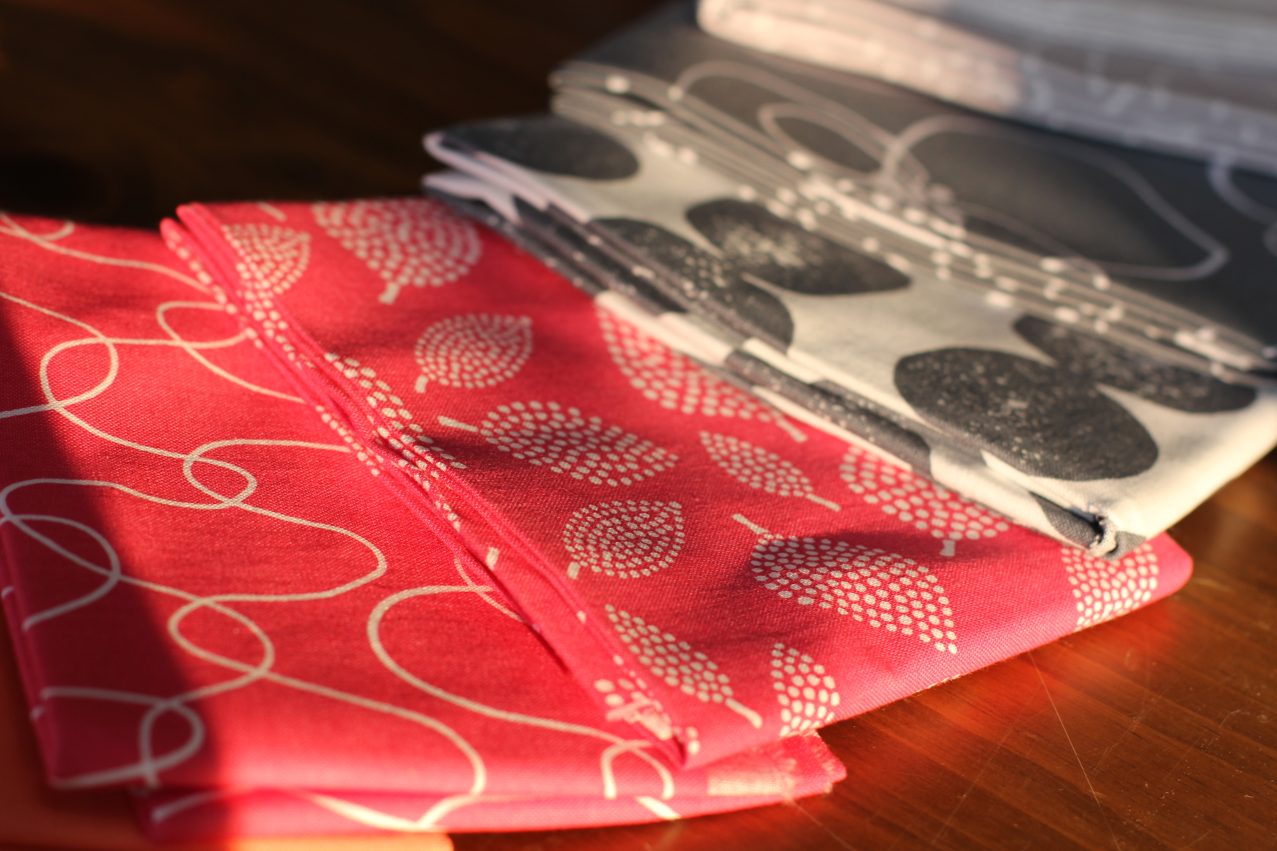 Lotta Jansdotter gives you something to think about.  The roughness and sometimes crude nature of the printed surface is very pretty.  I like that her designs retain that hand printed quality, even though they aren’t hand-pulled prints. (Although all of my favorite printmaking teacher Kathy Reeves would tell you that spotty surfaces is shotty printing, but I like it in this instance.  Sorry Kathy.)  Here’s a closer view of one of those spotty fabrics, this photo taken from Windham’s website.