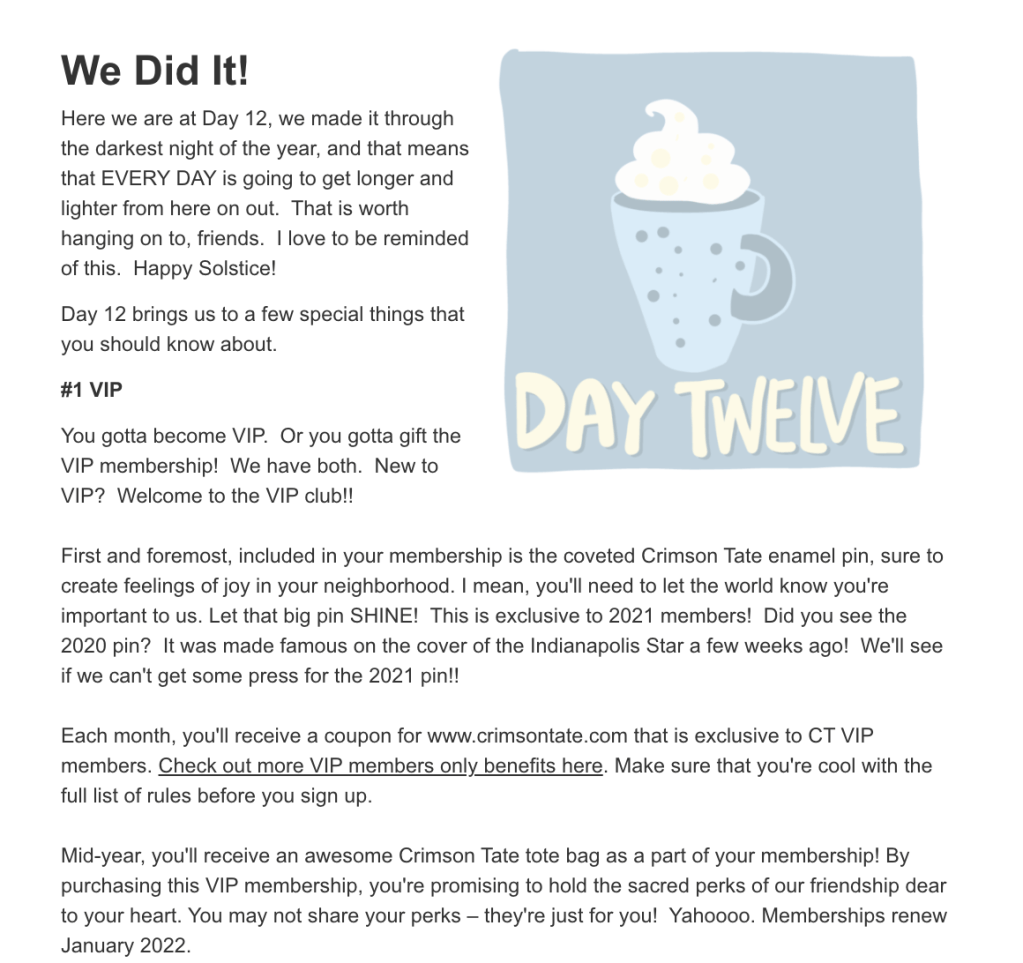 12 Days of Holidays @ Crimson Tate all codes/specials valid until Dec 24, 2020 @ 1:00 PM EST