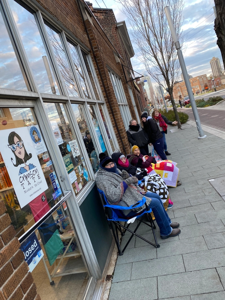I’d like to invite you to support the efforts of local IU Health Comfort Care Quilt group, spearheaded by Crimson Tate customer and friend, trauma surgeon Dr. Ashely Meagher. The group creates quilts for trauma patients who are at the end of their treatment and are receiving only palliative care. What this means is that their conditions are terminal and nothing more can be done. This is where Ashley’s love and compassion for her patients, and her passion for quilting kicks in. She has created a network of quilters who make quilts for these patients to use in their final days. What a beautiful, tangible way to express care and love for local families who are faced with sobering realities. Those quilts will be passed on to the families of the patients. Ashley from the beginning has made a conscience effort to create a partnership with Crimson Tate for which I am incredibly grateful and hope that you, too. She has made a commitment to procure and source as much as she can from local, independently owned fabric stores.
