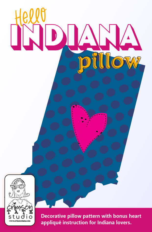 In my life, I’ve sewn 100s of various states but mostly Indiana pillows. Maybe there’s a shout out among you who have one!? Well, now we all can have one. Welcome aboard to the newest pattern by Crimson Tate Studio – the Hello Indiana pillow pattern. Wahoooooooo. Available on paper with full size template NOW at Crimson Tate.
