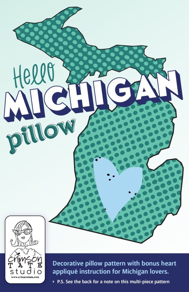 Gather ‘round kids. I’ve got a story to tell. Before there ever was a Crimson Tate proper, meaning a fabric shop, I was living in Northern Minnesota trying to make a path for how I wanted my life to unfold. I was teaching high school art (Go Hilltoppers) and making stuff. And while this isn’t a story about the Harriet Headband, although it is also a legendary tale in my history as I was sewing those beasts day and night, it’s about how the Hello State pillows were born. I would set-up my lil’ folding table at every church bazaar and craft fair that would have me to sell a variety of sewn goods. And in wanting to spruce up my display in a stroke of genius, I sewed a Lake Superior shaped pillow purely as decor. That little beauty took me down the path of sewing lots of shaped pillows from Minnesota, Wisconsin, Illinois, Ohio, and eventually my home state of Indiana. One time, I sewed a Colorado for a friend who wanted one. Colorado is definitely a beginner state