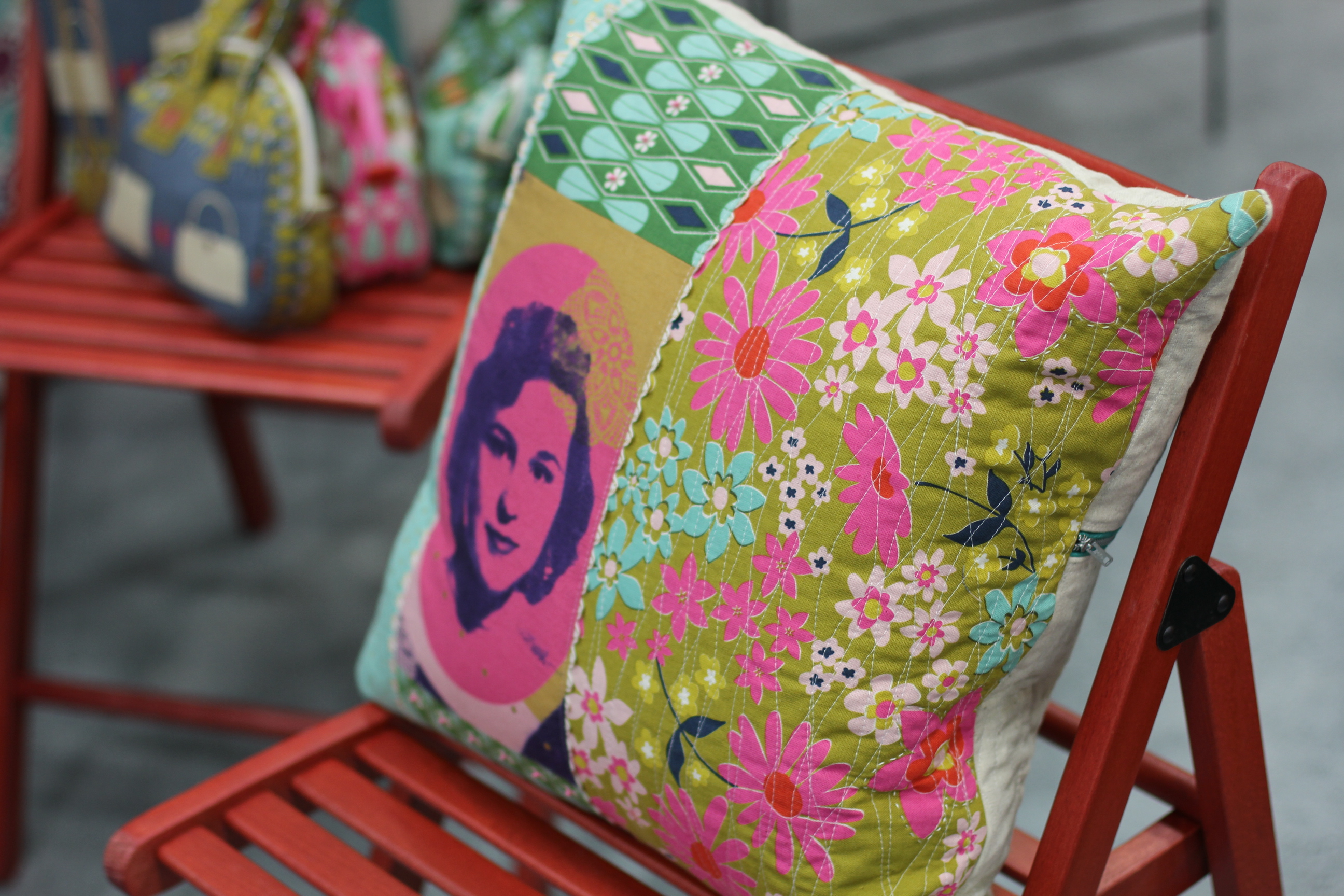 I call this photograph “If Lotta Jansdotter, Amy Butler, Heather Ross, and Heather Givans went into a bar…” Actually, that might have happened once. I can’t be sure. I stuffed this bag full of Indiana shaped pillows made from fabrics of some of these lovely ladies. I also created a CUUUUTE hat with simple pompom instructions found in Lotta’s book. It gave me an excuse to shop at Mass Ave Knits in Downtown Indianapolis. It is a yarn lover’s oasis.